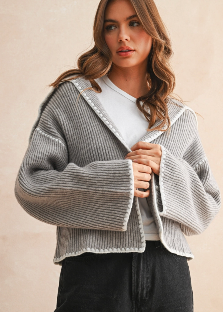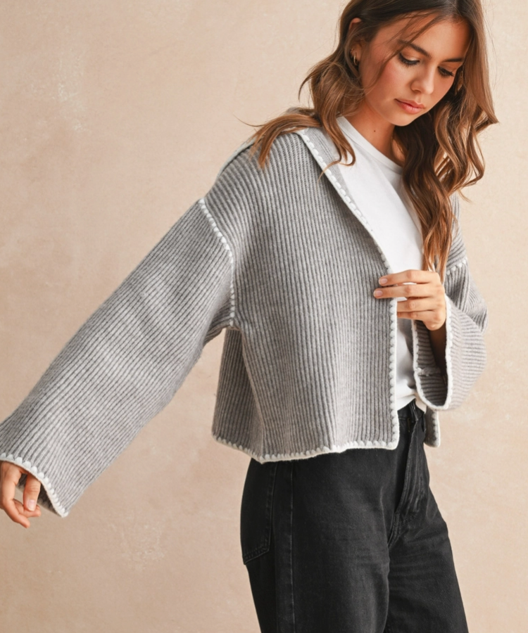 Grey Stitched Cardigan